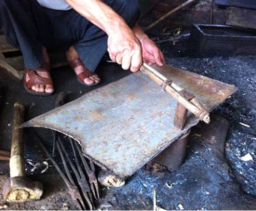 Theo hai cụ Nguyễn Văn Học (90 tuổi) và Nguyễn Văn Tưởng (85 tuổi), làm nghề và sống thọ ở làng, nghề rèn phát triển mạnh từ những năm 1945. Mặt trận Việt Minh về đặt rèn kiếm và dao găm cung cấp cho nhân dân trong vùng đánh Pháp đuổi Nhật sau đó trả tiền hoặc cung cấp nguyên vật liệu là sắt và than. Thời kỳ 1949 – 1950, cuộc kháng chiến chống Pháp trường kỳ của dân tộc bước sang giai đoạn phản công, yêu cầu rèn đúc các loại vũ khí đánh giặc được đặt ra, làng nghề đã rèn giáo mác, dao, kiếm…Nhiều gia đình giầu có nhờ làm nghề như hộ ông Khuông, ông Lương, ông Đốc, ông Minh, ông Quản Lưu, ông Quản Khôi… người làng.